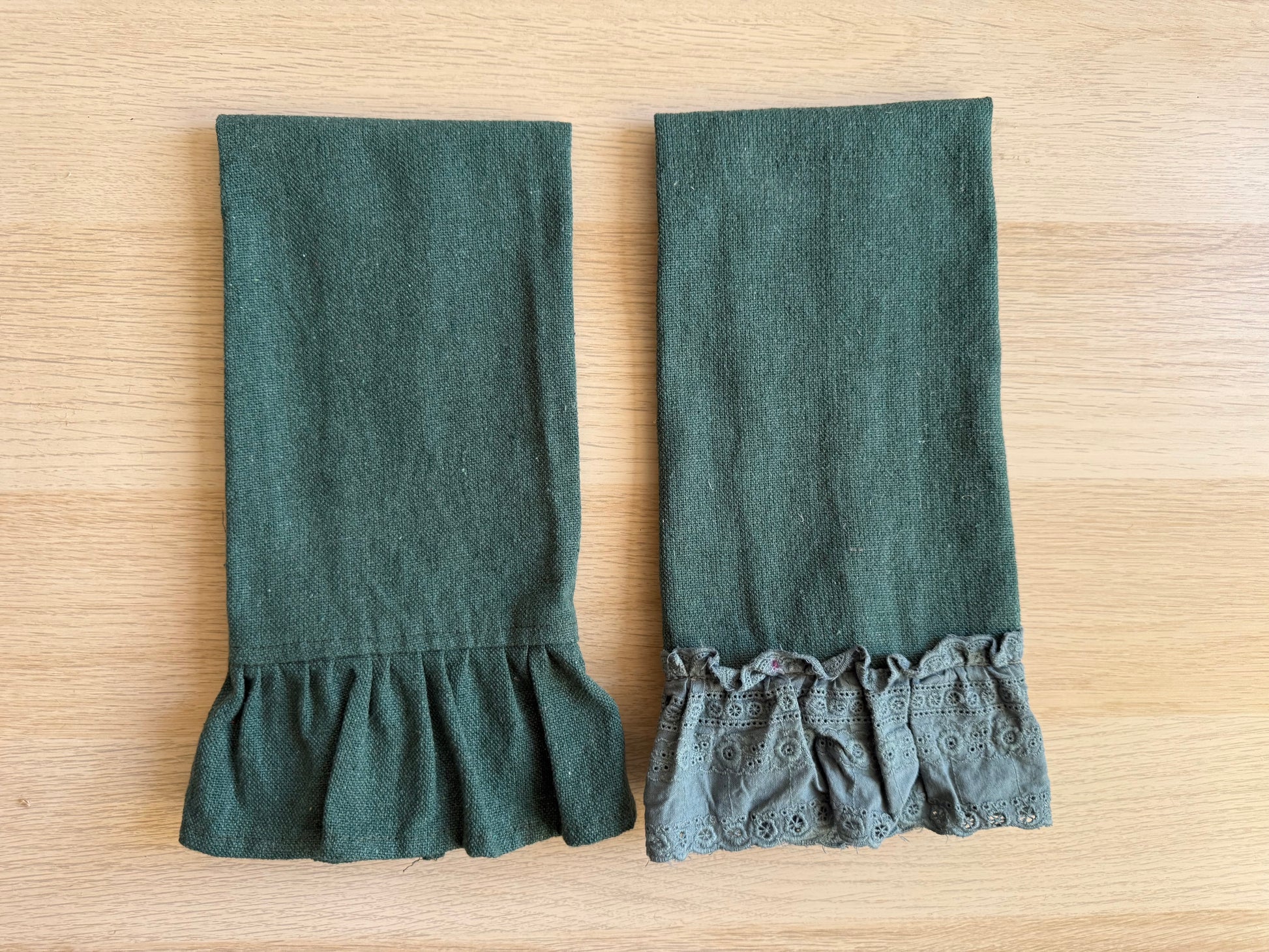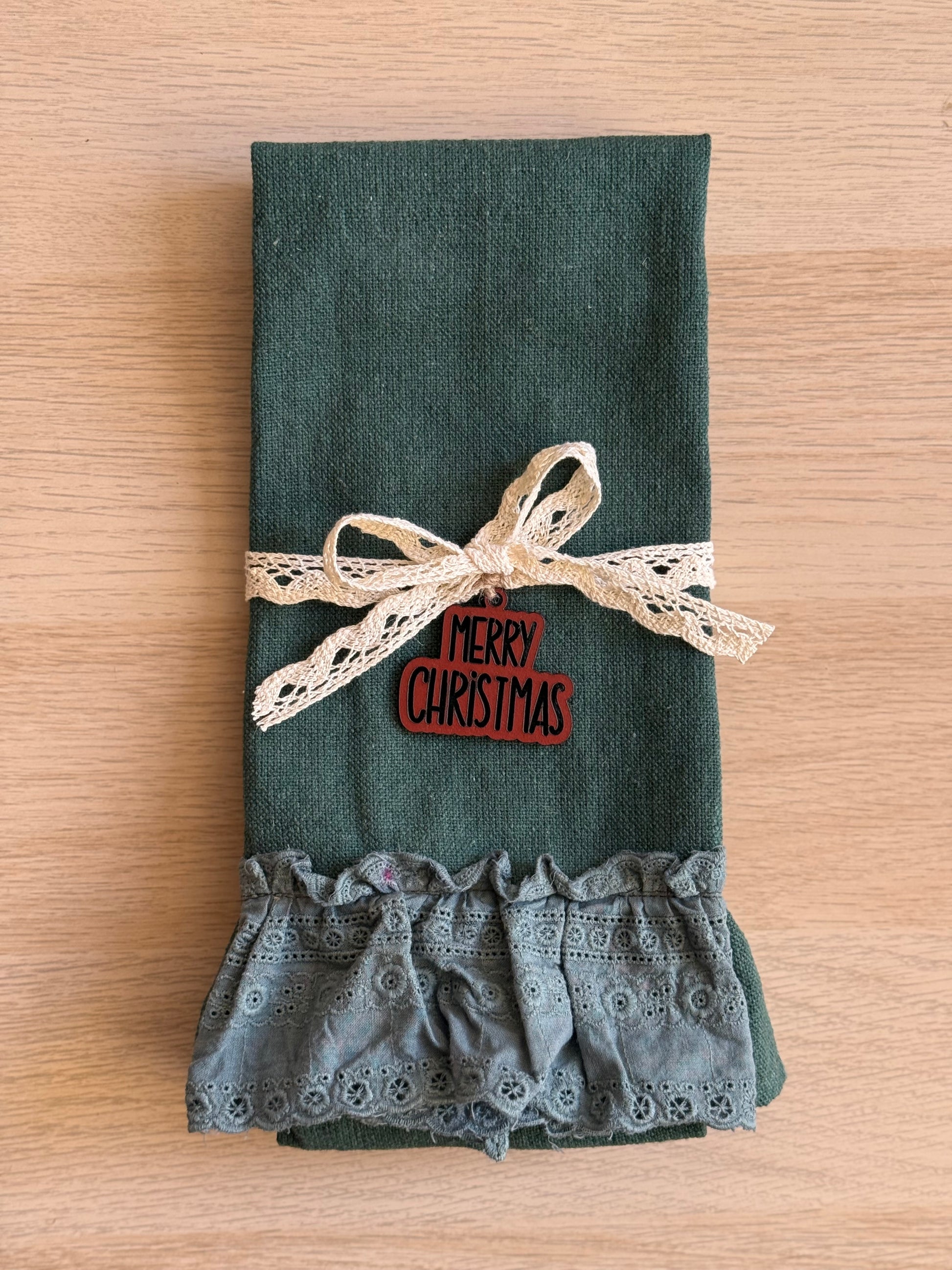 Each set includes 2 beautifully crafted towels, designed with a charming ruffled edge that brings warmth and Christmas magic to your home.