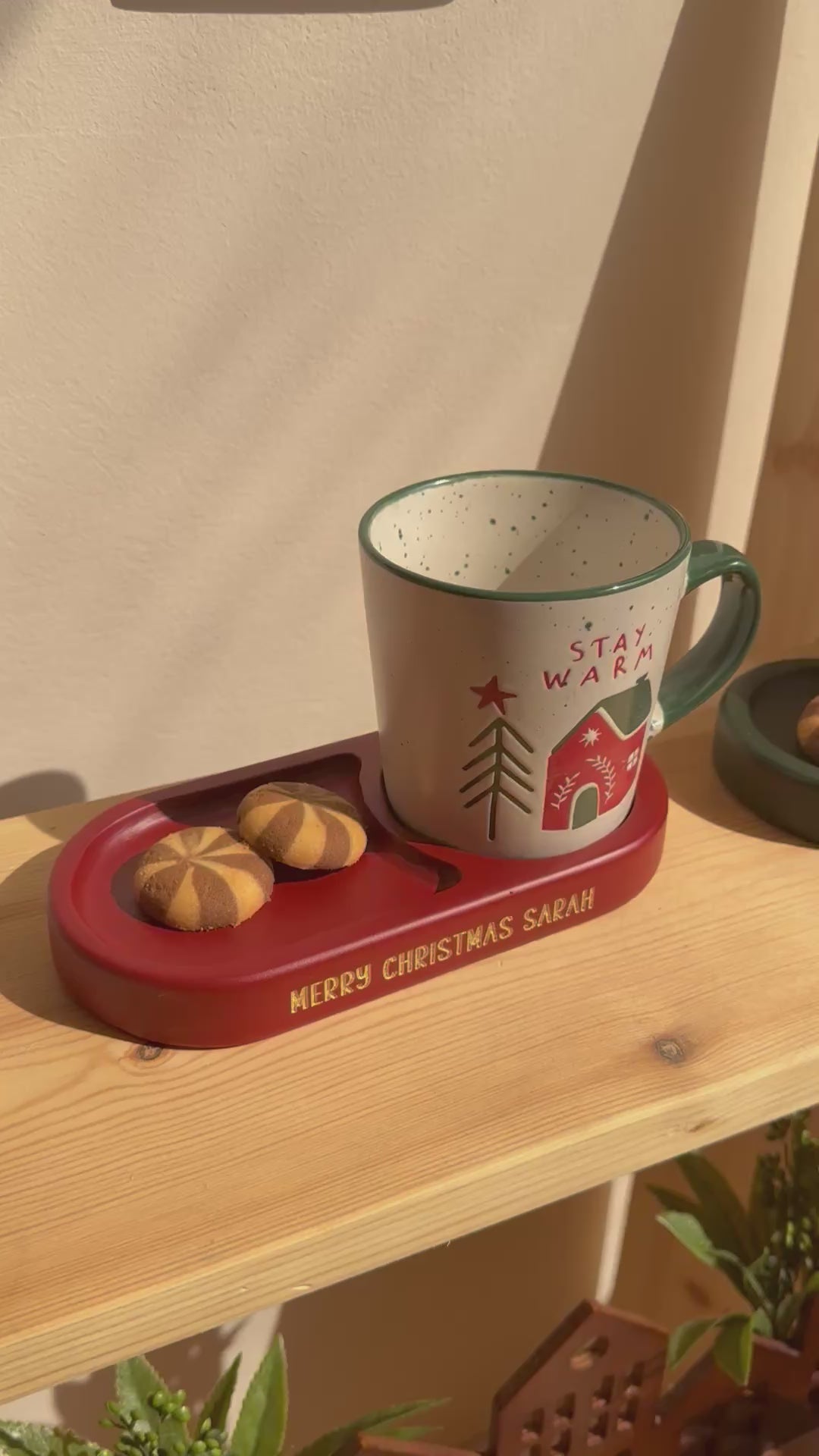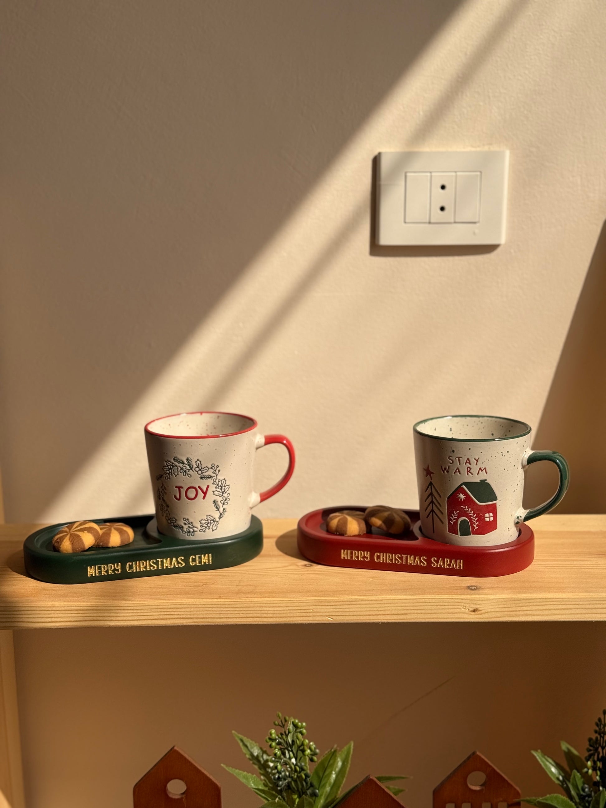 Make your Christmas coffee moments extra cozy with our Christmas Mug & Treat Tray — a beautifully crafted wooden tray designed to hold a mug and a small treat side by side.