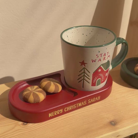 Each tray is hand-painted in festive red or green and engraved with a personalized Christmas message, making it the perfect gift for loved ones, teachers, coworkers, or holiday hosts.