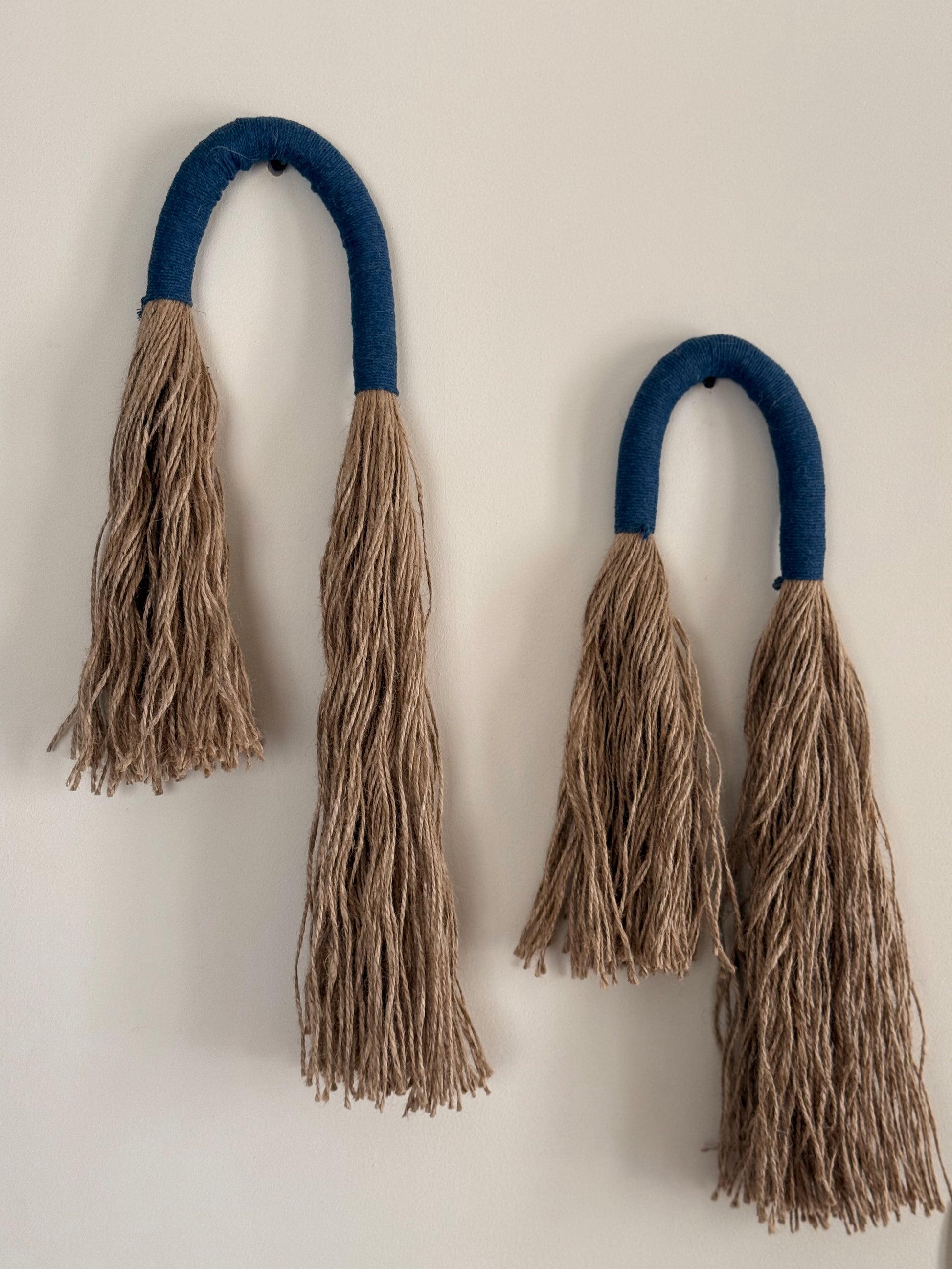 Add texture and movement to your walls with this handmade loop tassel decor. Crafted with a thick jute rope and wrapped arch, it brings a cozy, natural touch to any boho or neutral-themed space. Perfect for hanging in entryways, nurseries, or beside your favorite wall art.